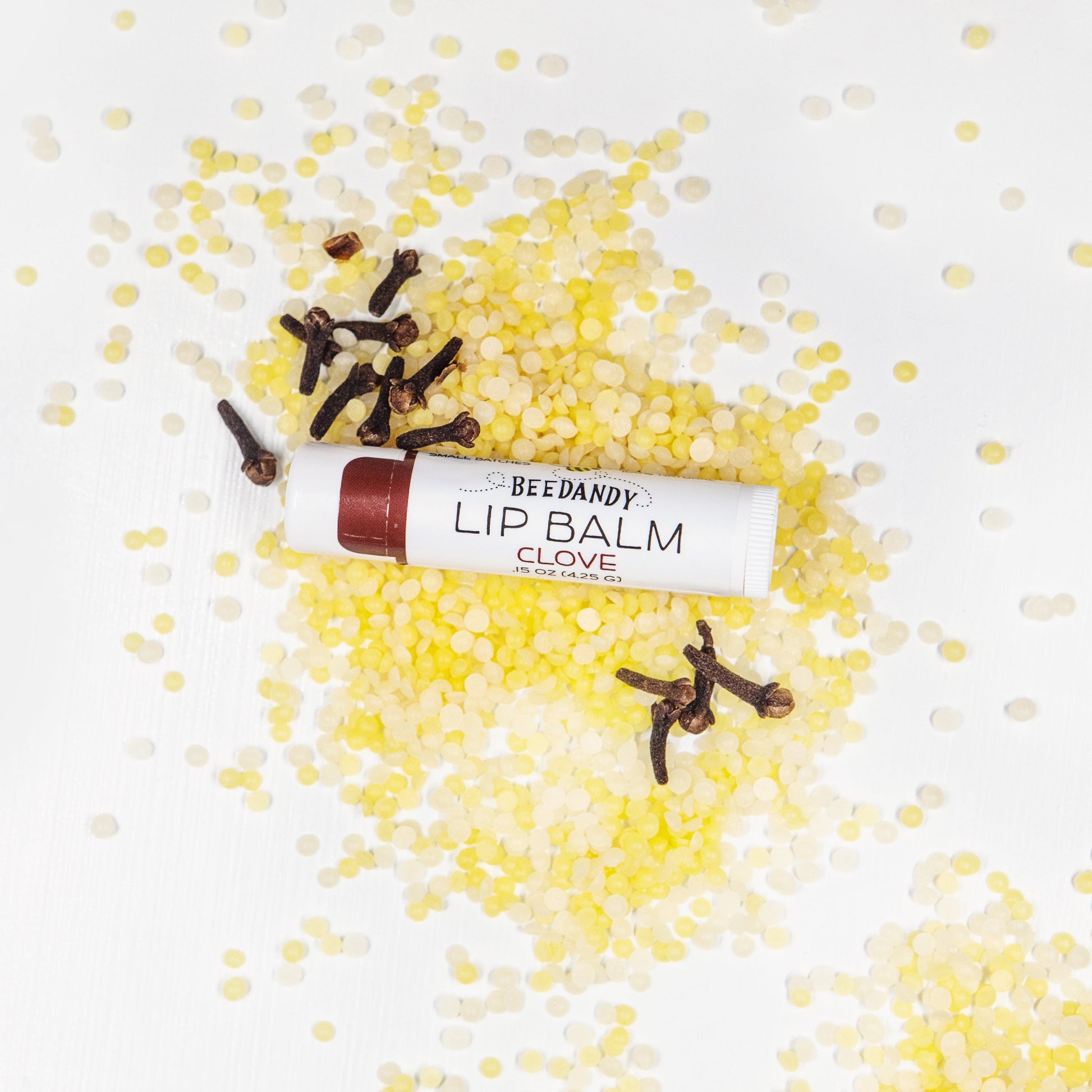 Clove: coconut oil, beeswax, cocoa butter, clove essential oil